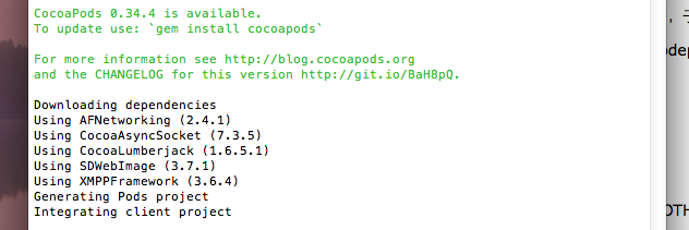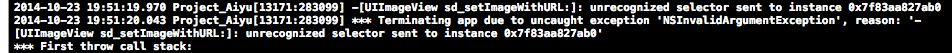 今天在自己的项目中用CocoaPods引入第三方SDWebImage的时候,出现了问题。当更新完毕后,在终端没太注意这个问题的提示,就直接使用SDWebImage了,在使用的时候一些方法的提示和头文件都能引入和使用(看上去SDWebImage可以正常使用),可是一运行就报错(错误是下面给出的错误)。貌似是程序写的有问题,然后就检查程序代码,可是检查不出任何错误,折腾了半天,然后就猛然想起pod update时报的错误。下面就写篇博客来纪念一下这个bug~