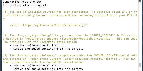 1.引入第三方库的时候,在终端上会显示下面的警告,是警告(黄叹号吗),当时我就没太在意!感觉出现警告应该能正常运行的~警告如下(主要是下面的俩个):